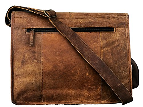 -. Feature : PREMIUM QUALITY: Imported, High quality soft genuine leather, has a unique design, red attractive look with antique brass metal buckle accessories carry rich brown color. The bags have dedicated padded laptop sleeve inside for safety of electronics. Can be used for everyday use like leather laptop bag, Messenger bag , school bag , travel bag, Cabin bag, Business bag , courier bag, college bag , office bag , for work and other intended uses .Double Quality Check, durable product. / DIMENSIONS AND CHARACTERS: 15" Wide x 12" Height x 4" Depth fits up to 15" laptops. Adjustable long Shoulder strap for carrying anywhere with comfort. Heavy duty clip snap / latch for closure. 100% Eco-Friendly, strong but supple leather and sturdy lining inside, light weight. Protects from shock and scratches. (Perfect for personal documents, laptop, books / notebook, net book or iPad , e books ) / ENOUGH ROOM: huge main compartments with 1 zippered pocket inside, 1 large pocket in outer front for Book, ipads, tablet, wallet and other . dedicated small pockets inside for calculator pen and phone. One rear zippered pocket at backside, for cards, cash, cell phone and essential for easy access. Main compartments can be used to keep Laptop, Legal papers, camera, folder, binder, notes, document, computer device , notebooks, chargers and many more. / LEATHER BAG WITH RUSTIC AND VINTAGE LOOK: Our bags are 100% Genuine Leather by best Artisan, nice retro, vintage and rustic look , you can just fold / crush for getting better crease color. Genuine leather messenger bag is handcrafted by professional experienced artist. Going office or collage we need something to carry your all day essentials like laptop, files, folder and other belonging to fit them at one place place our leather laptop bag is perfect for all your needs. / INCREDIBALY STYLISH AND BEST GIFT: Sturdy enough to stand on its own,looks high end with formal or casual attire. Perfect for students, business or travelers want to make a fashion statement. Best present for Christmas, mother's day gift birthday, father's day for and for other presents. A perfect leather laptop bag, messenger bag , Crossbody bag