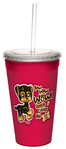 Tree-Free Greetings cc34322 Jesus Loves Me Brown Puppy: John 3:16 Artful Traveler Double-Walled Cool Cup with Reusable Straw, 16-Ounce