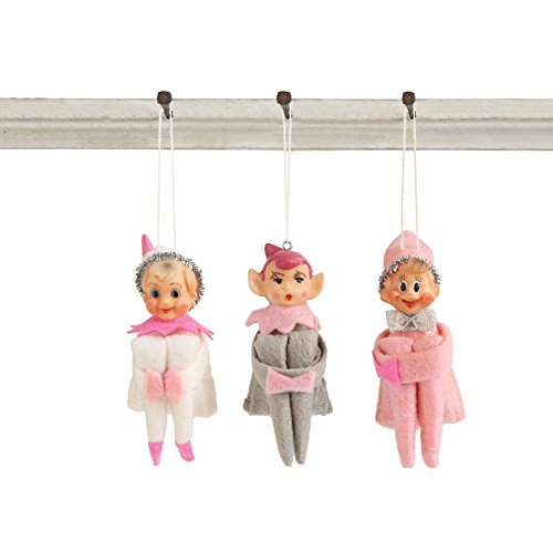 - Creative Co-Op XM0212 Pink Christmas Set of Three 5L Vintage Elf Ornament