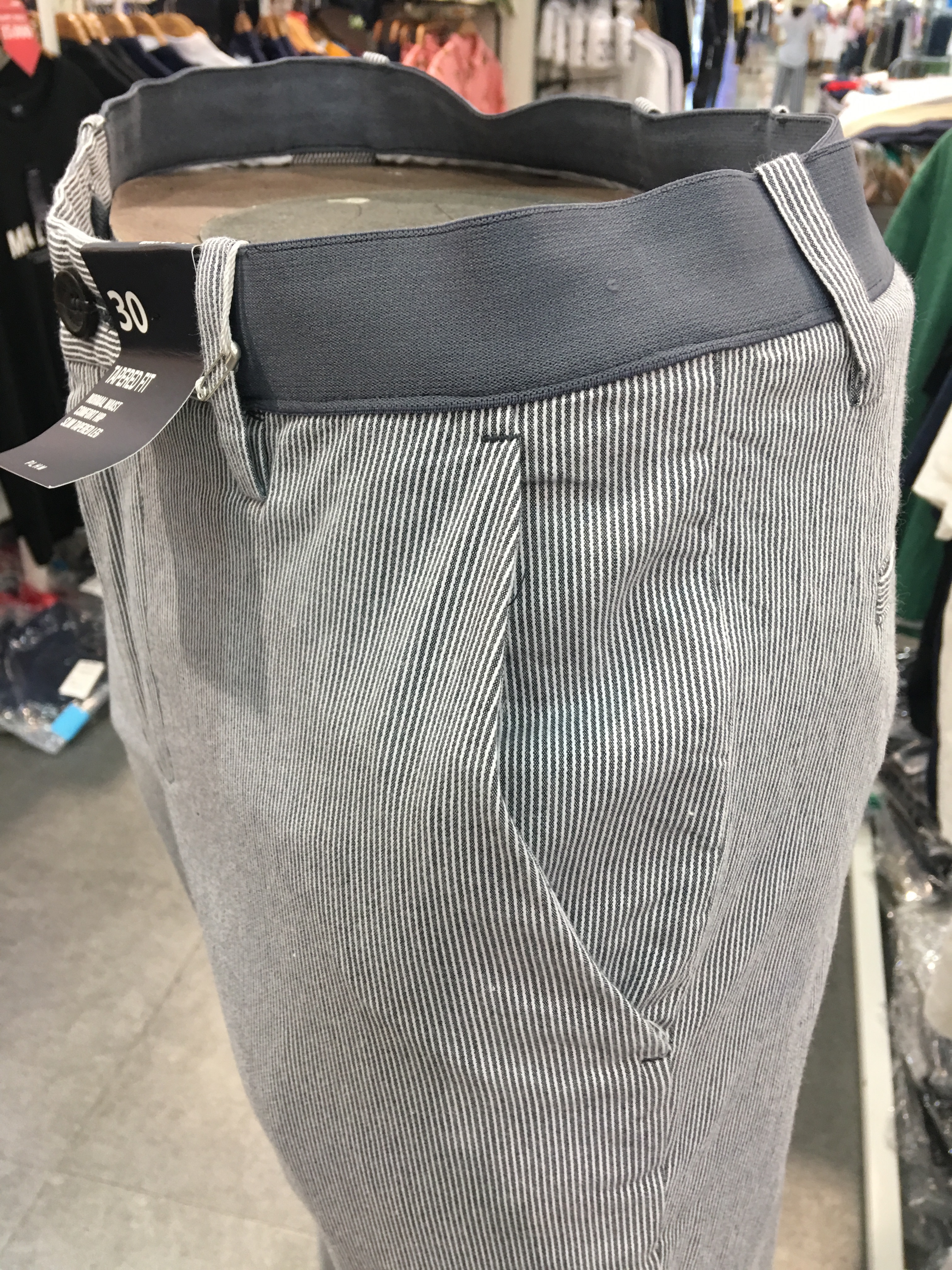 폴햄 신상 남성 스트라이프 밴딩 면팬츠입니다. 허리선쪽으로 끈이 있어 사이즈 조절이 가능한 상품입니다.