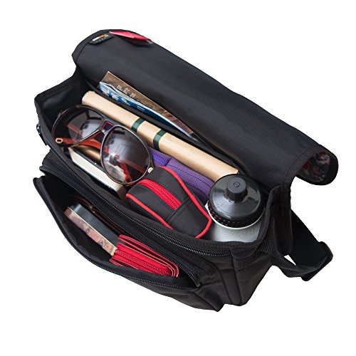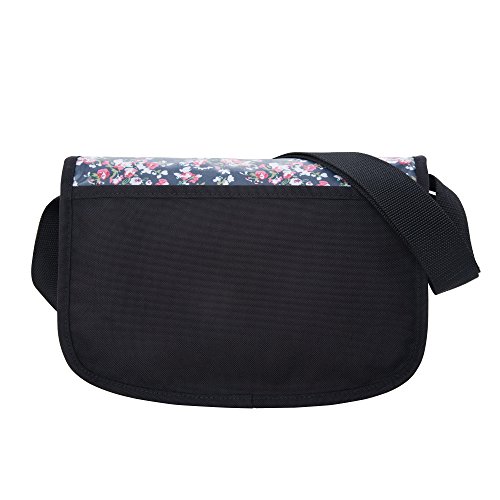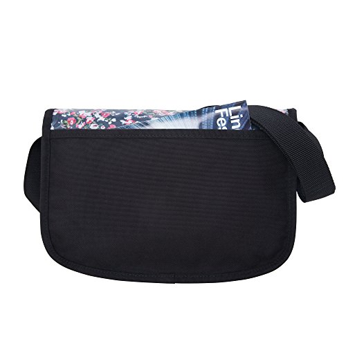 -. Feature : Repeating floral P.R.Int / 1.5 inch wide shoulder strap, perfect for smaller frames / Sturdy buckle closure / One roomy zippered compartment underneath the flap / One open pocket on the back for magazines for documents