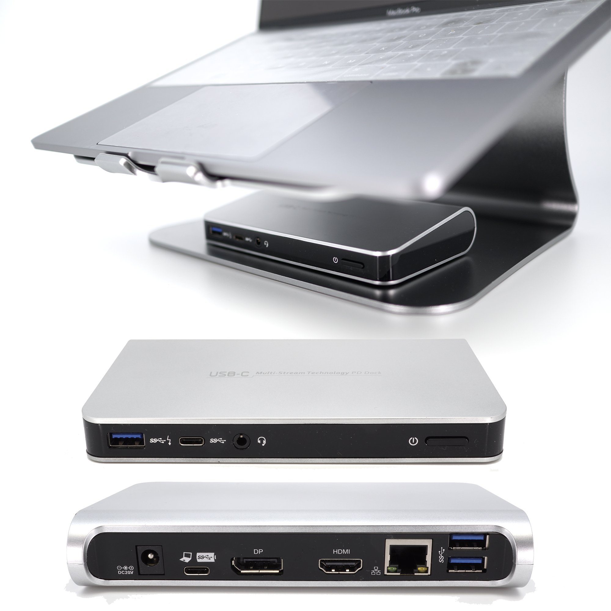 ■ Supports audio 2.1 channel ■ Supports Gigabit Ethernet USB-C PD DOCK connects more PC peripheral equipment, Ethernet, Speaker, Mic, with one USB-C cable.