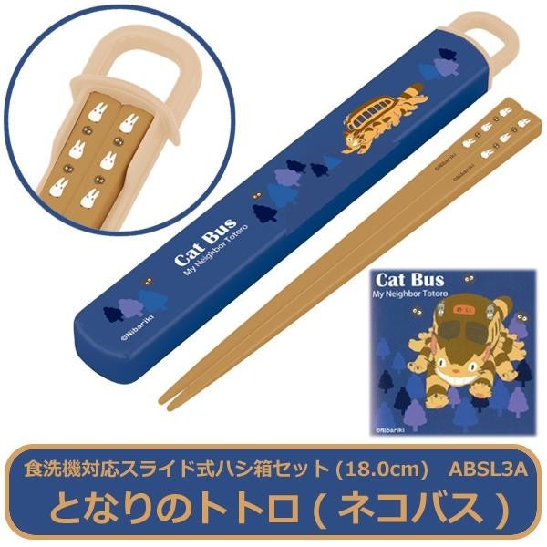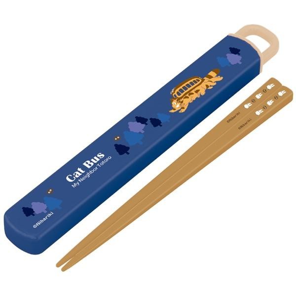 夜の森を走るネコバスのイラストが入った、はし箱とお箸のセットです。指で引き出すスライド式で開け閉めラクラク! |