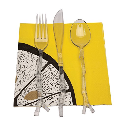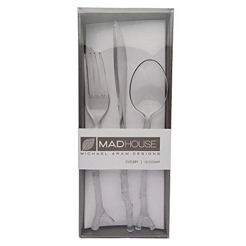 MADHOUSE BY MICHAEL ARAM 12 COUNT TRANSLUCENT ASSORTED TWIG DESIGN CUTLERY, CLEAR