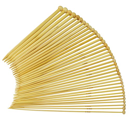 36 PCS Bamboo Knitting Needles set - Pistha 18 Sizes Bamboo Knitting Needles set Bamboo Single Pointed Circular Knitting Needles Set (Sizes from 2.0 mm to 10.0 mm)
