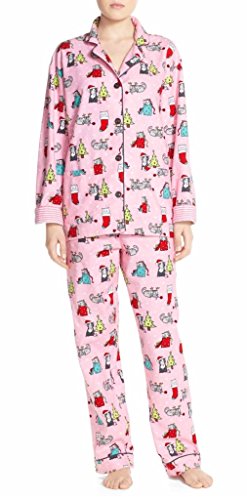 PJ Salvage Holiday Flannel Pajama, M, Pink Cat