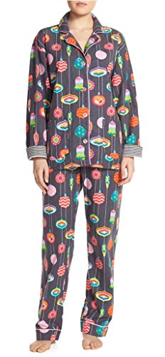 PJ Salvage Holiday Flannel Pajama, XS, Pewter Ornaments