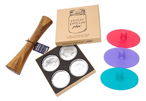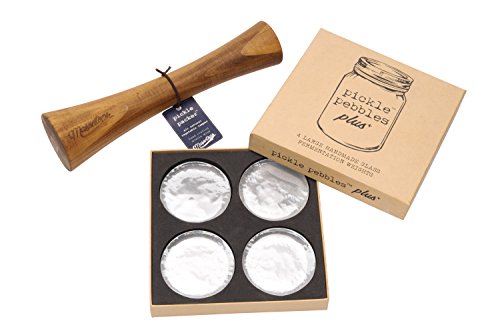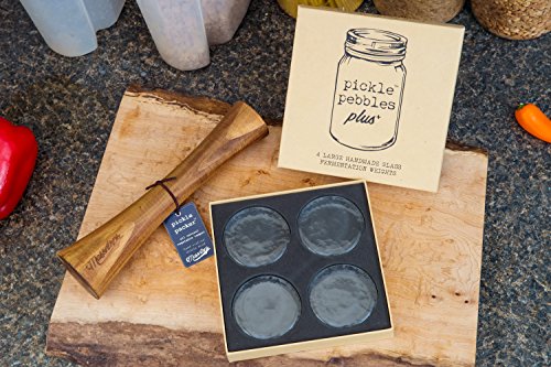 • Includes Pickle Pebbles Clear Glass Fermentation Weights and the Pickle Packer All Natural Acacia Wood Vegetable Tamper