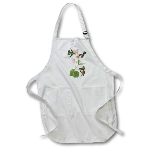 3dRose apr_179033_1 Hummingbirds with Pink Flowers Vintage Full Length Apron with Pouch Pockets, 22 by 30-Inch, White, with Pockets