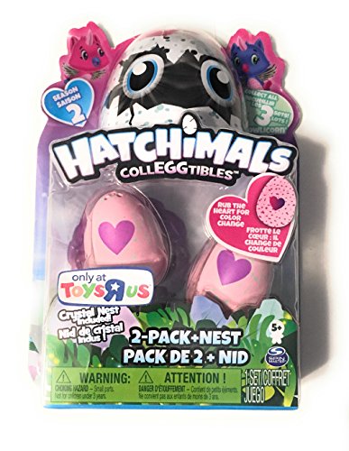 -. Binding : Toy -. Brand : Hatchimals -. Feature : An adorable bundle that any Hatchimals lover won't be able to resist! / Comes with the Exclusive 2 pack with Crystal Nest, the NEW Blue 2 Pack Carton, and a BONUS Mystery Clip On Keychain Plush! / Collect them All! / Colors and styles WILL vary! -. Label : Spin Master -. Manufacturer : Spin Master -. MPN : 5799641 -. PartNumber : 5799641 -. ProductGroup : Toy -. ProductTypeName : TOYS_AND_GAMES -. Publisher : Spin Master -. Studio : Spin Master -. Title : Hatchimals CollEGGtibles 2 Pack with Crystal Nest, NEW 2 Pack Blue Carton, and BONUS Mystery Mini Clip-On Plush Bundle