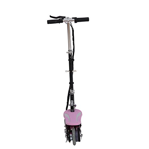 With a top speed of 7.5mph you are able to get to your destination in no time. The wide foot deck adds optimal balance and stability to make quick turns. The sturdy steel frame allows for riders up to 154 pounds so it is perfect for young kid that want their first scooter. It uses a lead acid battery with an included charger that charges in approximately five to eight hours. The belt driven motor allows you to rapidly get to top speed and the front hand brake keeps your youngster in complete control.