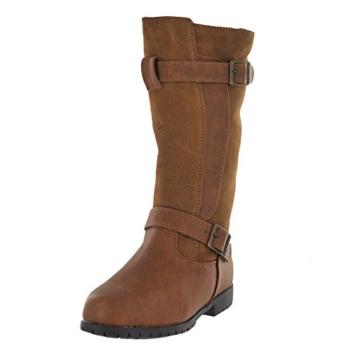 If you try on this 12" tall boot and then consider buying a motorcycle, it's completely understandable. The Edith is sexy, fun and rugged in all the right places. Made of cow suede and faux leather upper with top and bottom Bearpaw branded buckle detail. Wool blend lined with sheepskin footbed and TPR lug outsole. Material: Sheepskin.Feature