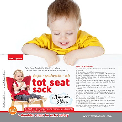 - Feature : Never have to pack a bulky high chair again; harness is self contained in compact cinch sack so tiny it can fit in your purse; cinch sack remains permanently attached to harness; instantly unravels and top side easily slides over chair back; 5 point durable safety harness prevents slipping, sliding or standing in chairs or grocery carts for complete security; now you can travel or dine on the go with ease, so you can have maximum convenience and save time; manufacturer lifetime guarantee / Instantly turn any standard chair into a baby seat; elite design is winner of moms choice award; measures 21 inch wide x 29.5 inch long; rugged stitching and reinforced seaming safe tested for max strength and quality; ideal for infant or toddler age 6 months to 30 months up to 35 pounds; fits most chairs; now you can prevent your child from running around or standing on chairs, so you can always know where your child is at, that they are safe and feel at ease; available in multiple colors / Superior durable harness secures entire body for total safety; adjustable shoulder and waist straps attach with side release buckle fasteners; seat size can increase as your child grows guaranteeing years of use; additional safety straps easily wrap around chair back securely fastening for max security; now you can have the ultimate babysitter harness on demand, so you can always know where your child is at and feel absolute peace / Ultimate time and space saver; just grab and go; as easy as 1, 2, 3 just slide over chair back, seat and secure; self containing storage pouch is as small as your fist for compact travel; ideal for dinner table, restaurants, coffee shops, theme parks, airports, doctors offices, and more; use anywhere you need your child to sit still; just click the add to cart button at the top of the page; never have to chase or fight with the kids again; now you can have more energy / Premium fabric is stain resistant and machine washable; reusable eco friendly non toxic; fully supports childs torso for unmatched safety; use indoor or outdoors, home or on vacation; you will want one for the nanny and grandparents house; ultimate security to protect your child and no longer have to worry; now everyone will have a seat at the table so you can create lasting memories with your family and feel happy