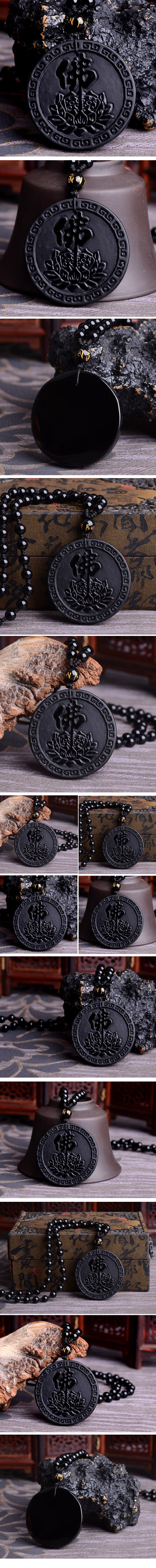 开光天然黑曜石莲花佛牌吊坠 开运平安男女款佛牌