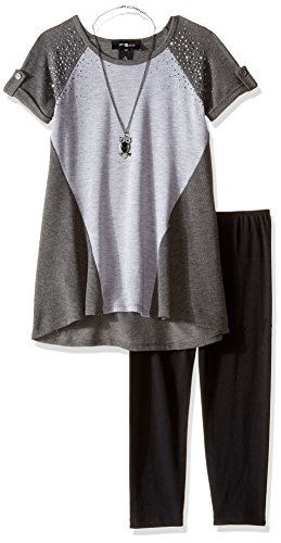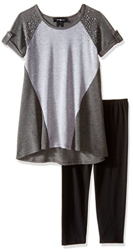 Amy Byer Big Girls' Cap Sleeve Colorblock Tunic with Legging-Exclusive, Grey, Large