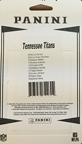 Tennessee Titans 2016 Panini NFL Football factory sealed 10 card team set including Marcus Mariota, Dorial Green-Beckham, Delanie Walker, Antonio Andrews, Michael Griffin and DeMarco Murray plus Rookie cards of Tajae Sharpe, Austin Johnson, Kevin Dodd and Derrick Henry.