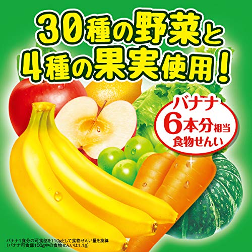 原材料:野菜汁(にんじん、トマト、有色甘藷、赤ピーマン、インゲン豆、モロヘイヤ、メキャベツの葉、レタス、ケール、ピーマン、大根、白菜、アスパラガス、グリーンピース、セロリ、しそ、ブロッコリー、かぼちゃ、あしたば、小松菜、ごぼう、ゴーヤ、しょうが、緑豆スプラウト(もやし)、パセリ、クレソン、キャベツ、ラディッシュ、ほうれん草、三つ葉)、果汁(ぶどう、りんご、バナナ、レモン)、水溶性食物繊維、食物繊維(シトラスファイバー)/香料