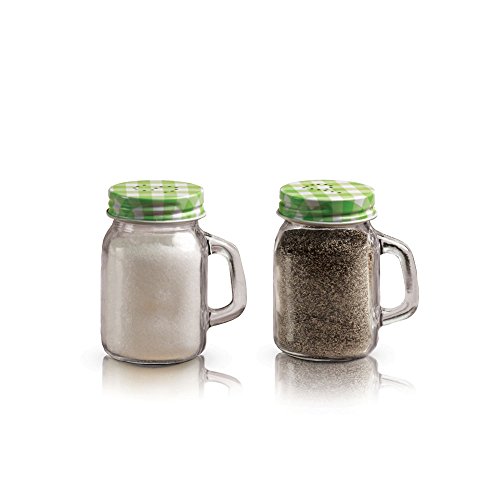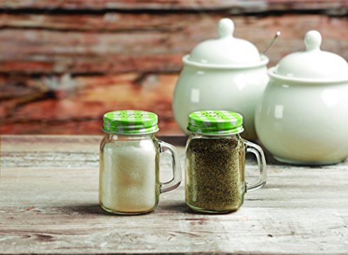 Salt and Pepper Shakers, Set of 2, Glass with Gingham Screw-On Lids, with Handles (5.10 Oz.)