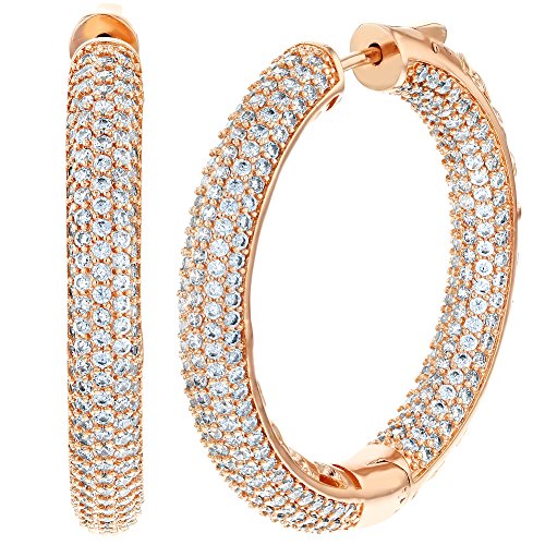 Hoop earrings never seem to go out of style. With a feminine, sexy vibe our rose gold plated CZ inside out hoop earrings will take you from drab to dramatic in one easy step. Sparkle with these stunning inside out hoop earrings for women. These cubic zirconia fashion hoop earrings are a stunning, sophisticated pick for any jewelry box.Feature
