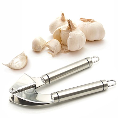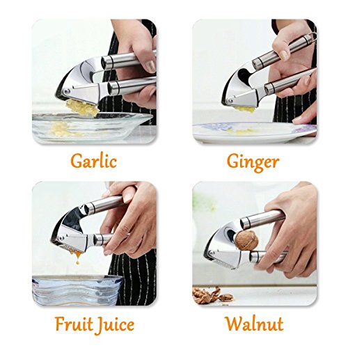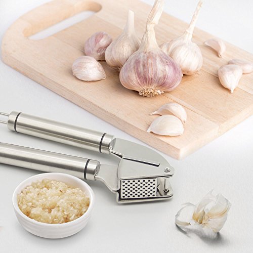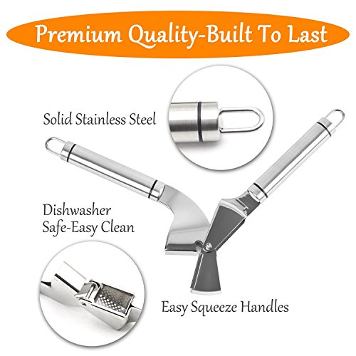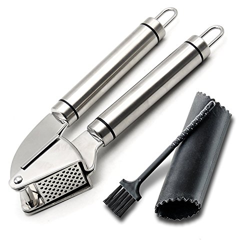 High Quality & Practical - High Quality Food-Grade German 304 Stainless Steel Made Garlic Press. Gift: FDA Approved Silicone made Peeler Tube and Garlic Press Brush