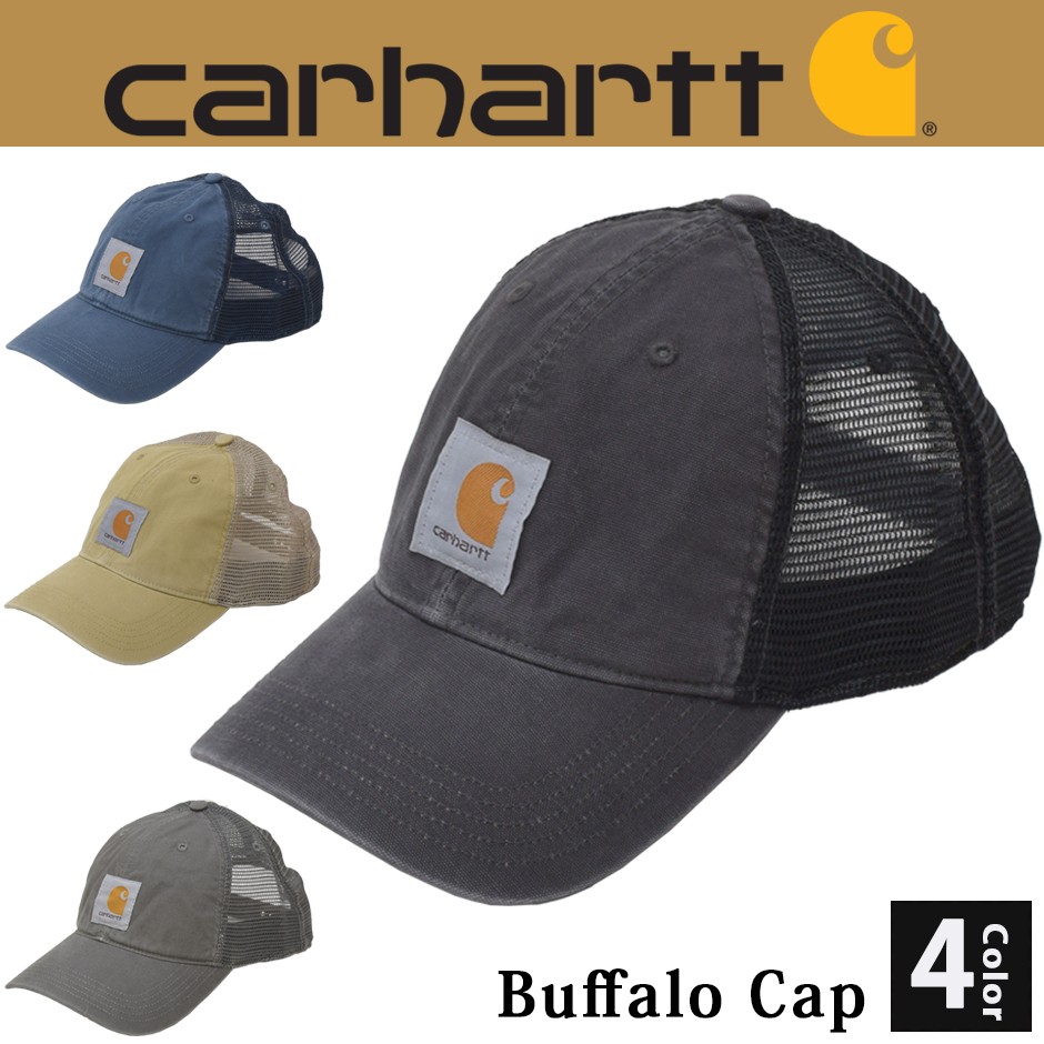 【ブランド名】carhartt/カーハート【商品名】Buffalo Cap【商品番号】100286【サイズ】調節可能(頭囲57cm~61cm)【つば】約7cm【素材】本体/綿100% メッシュ部分/ポリエステル100%1889年にアメリカのミシガン州デトロイトで誕生したCarhartt(カーハート)。タフなダック地とデニムで作られたオーバーオールを世に送り出したcarhartt(カーハート)は、その後120年以上に渡り愛され続けるワークウェアブランドとなりました。ワークウェアだけでなく、カジュアルウェアや毎シーズン展開する様々な生活雑貨類なども手がけるようになり、1997年にはCarhartt WIP(カーハート WIP)をスタートさせ、ヨーロッパを中心に、アジアやアメリカでより絶大的なマーケットを確立しました。労働者たちの求める丈夫なワークウエアを作り、アメリカの発展を支えてきた労働者達に支持されており、耐久性と機能性は確かなものであると言えます。