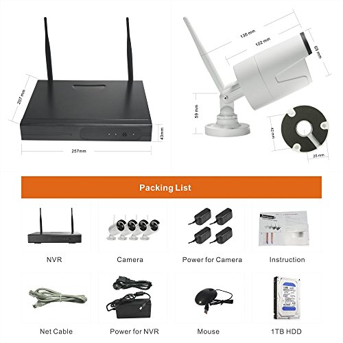 -. Title : CNHIDEE 4CH IR HD Home Wifi Wireless IP Security Camera System DVR Kit 720P CCTV SET WIFI Outdoor HD NVR Surveillance cctv KIT with a 1TB HDD installed.