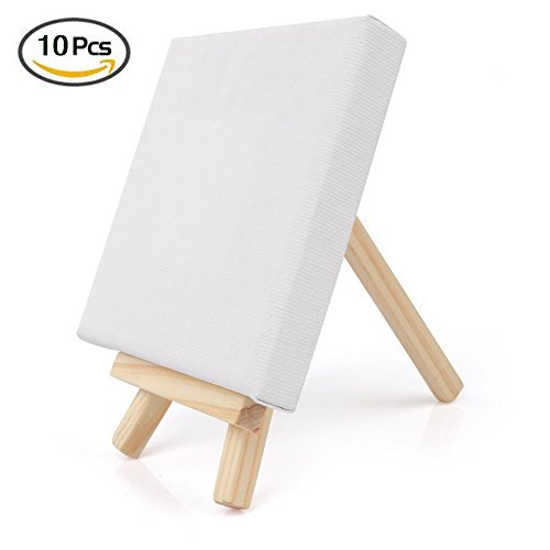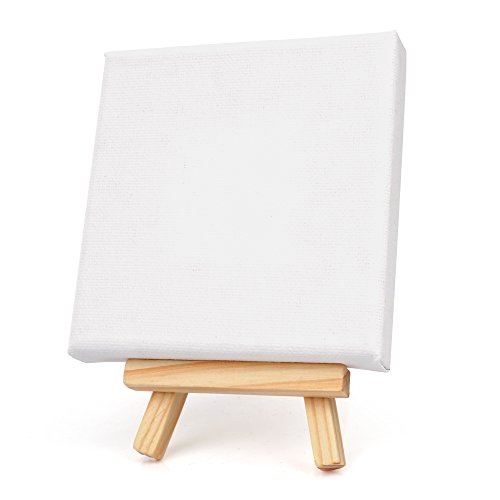 Baimeixun 10 Pack Mini Canvas and Mini Wood Easel Set for Painting Drawing School Student Artist Supplies (4inch × 4inch)
