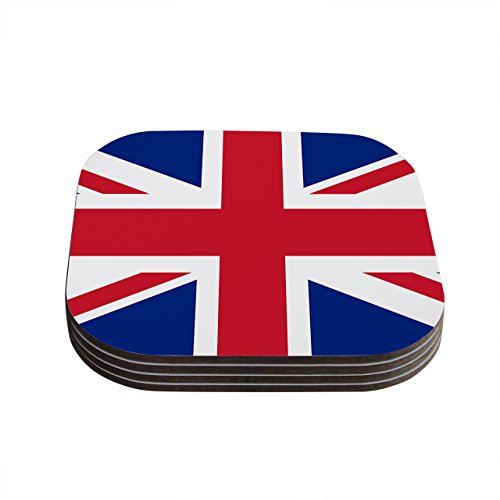 KESS InHouse Bruce Stanfield "Classic Union Jack Blue Red" Coasters (Set of 4), 4 x 4", Multicolor