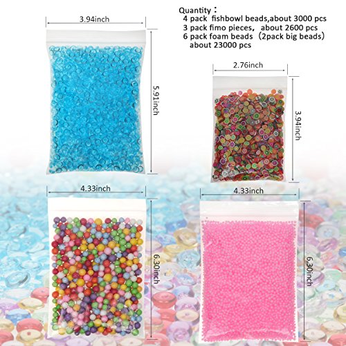 - Color: Fishbowl beads: mixed color, red, purple, blue; Foam balls: mixed color, white, pink,red,green; a variety of fimo pieces, brightly colored can meet all the hobbyists needs,all accessories add in for making great slime.