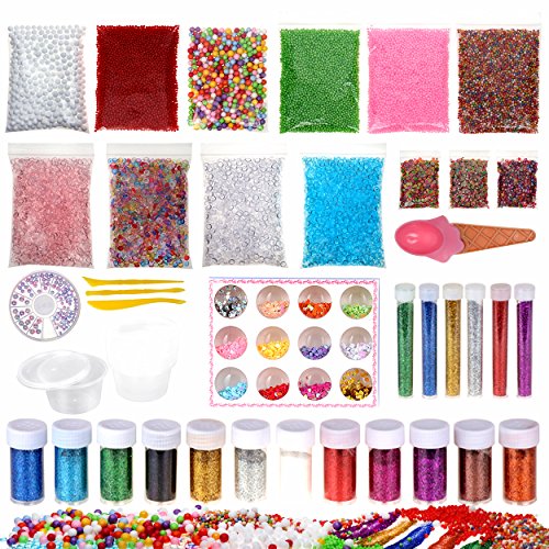 56 pack slime making kit for girls kids and boy including fishbowl beads glitter and sequins foam balls fimo clay slices spoons and 4oz container with lids cheap prime ship