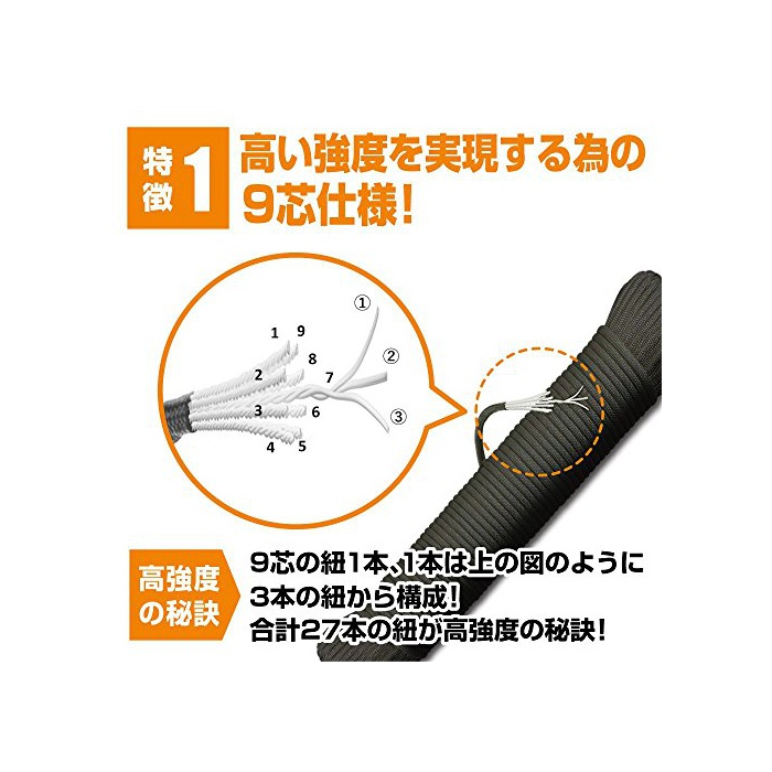 【발군의 내구성】파라 코드의 소재중에서 가장 고강도인 내구성을 뽐내는 나일론 소재를 사용 하고 있습니다.당사가 엄정한 심사를 행동내 하중도 약250kg를 자랑합니다.