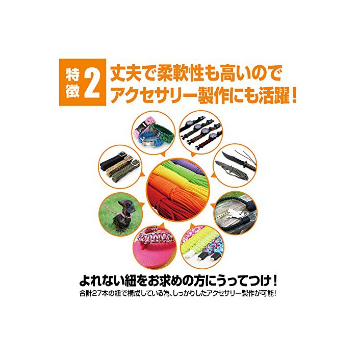 【사용 용도】유연성의 높은 소재 를 위해 텐트용 로프 해먹(hammock) 넷 또한 팔찌 등 악세사리 제작으로도 활약하는 뛰어나 것입니다.