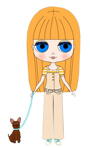 Wearing light blue sneakers at your feet, walking along with Chihuahuas of pet dogs ♪ Hair color is neon orange, conscious of mango and plus saturation.