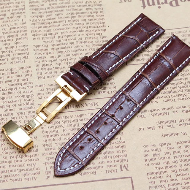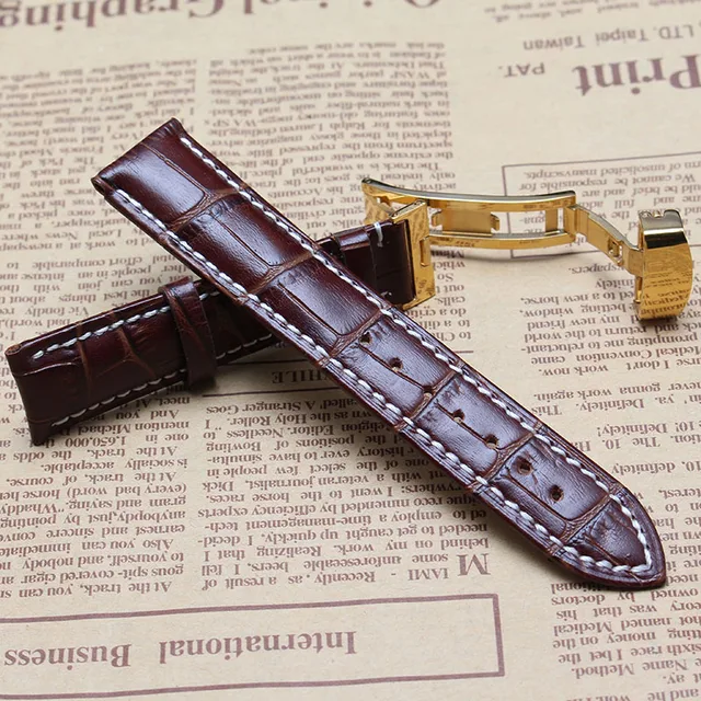 상품 내용 정품 가죽 손목 화이트 라인 스티치 패션 접이식 버클 골드 배포 20 미리메터 망 시간 프로모션 새로운 벨트 항목 이름: 가죽 손목 항목 색상: 브라운 항목 폭: 20 미리메터