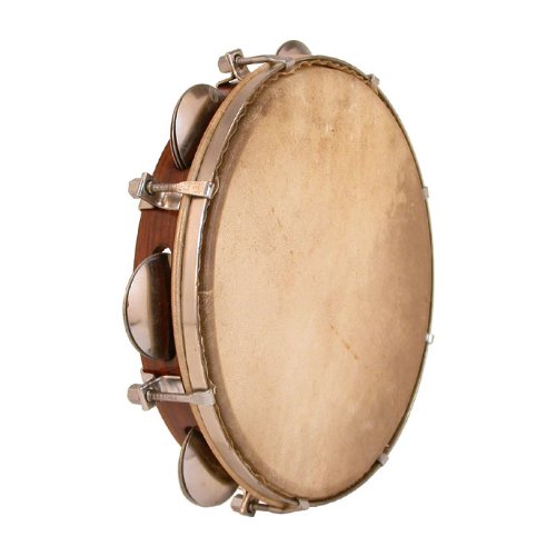 Rosewood, tunable goatskin with 7 sets of steel jingles. Includes tuning tool.0