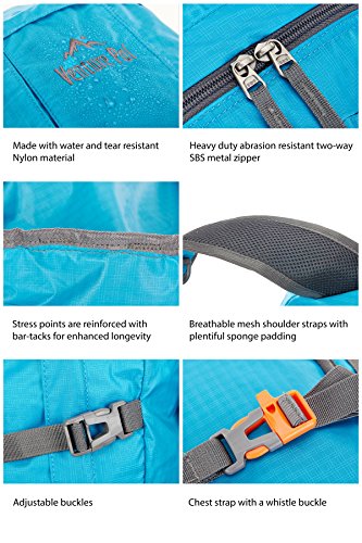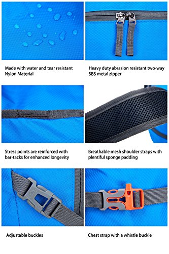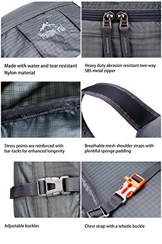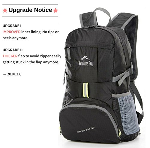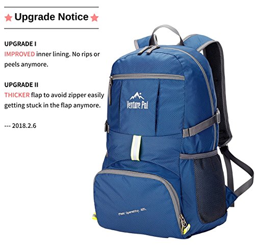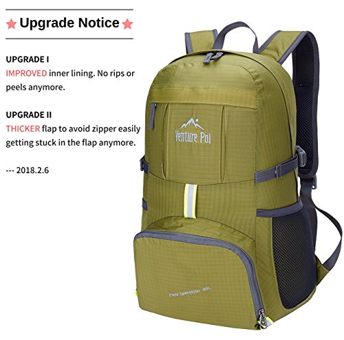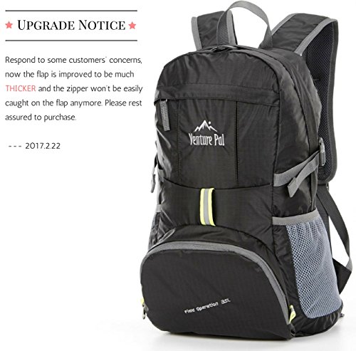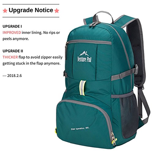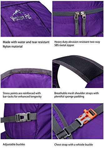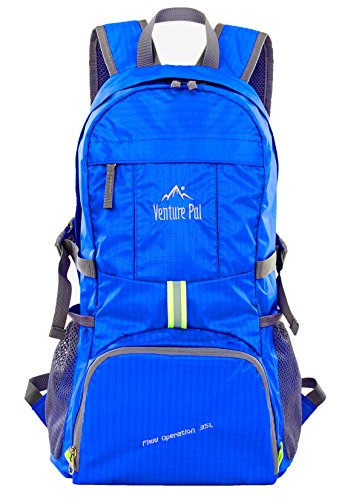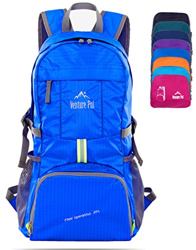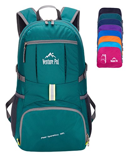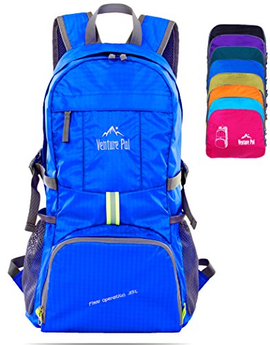 Studio : Venture Pal Publisher : Venture Pal Product Description About Venture Pal Packable Handy Backpack The best foldable Lightweight Outdoor Hiking backpack with a stylish look great for day-to-day use or occasional travel. Also it is suitable to regard as gift for your family or friend or colleague. COMPACT: Folding into zippered inner pocket to fit anywhere. Unfolds from pocket to backpack in seconds. LIGHTWEIGHT(0.7LB) and ROOMY(35Liters): A true space saver. Fold the backpack into its own pocket for storage. To avoid overweight charge, simply unfold from your checked bags and use it as a carry on for your excess baggage. DURABLE: This Venture Pal Backpack is made with high quality tear and water resistant material, provides extra strength and long-lasting performance with the lightest weight possible. The extra strength provided by the double-layer bottom piece makes it very convenient to carry more load on your journeys. Longevity is further enhanced by bar-tacks at major stress points. COMFORTABLE: Breathable mesh shoulder straps with plentiful sponge padding help relieve the stress from your shoulder. The length of the shoulder straps is adjustable. The chest strap with a whistle buckle help you lock your backpack in place securely. MULTI COMPARTMENTS and KEEP THINGS ORGANIZED: This backpack features one main zipped compartment, two zipped front pockets and two side pockets. The main compartment provide enough room(35 liters) no matter if it's a day trip or a week long journey. Two separators in the main compartment are convenient enough to help you further organize things. DIMENSIONS: Unfold: 20x13x7.5 inches,Fold: 9x8.5x2.2 inches Warranty: Our Promise-lifetime warranty-Exchange, return, whatever it takes. This Backpack is Ultra-light, Ultra-durable and Ultra-awesome. 0