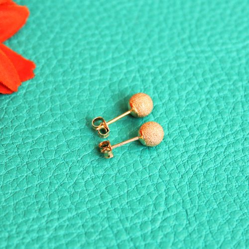 - Feature : These earrings are made of 14k yellow gold. Balls have a sparkling diamond-cut surface. / Click on the drop down menu to choose ball size. Posts are 8 mm long. / Earrings are come with a little 14k gold push backs, a gift box and free shipping.