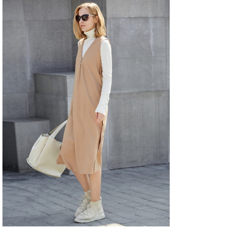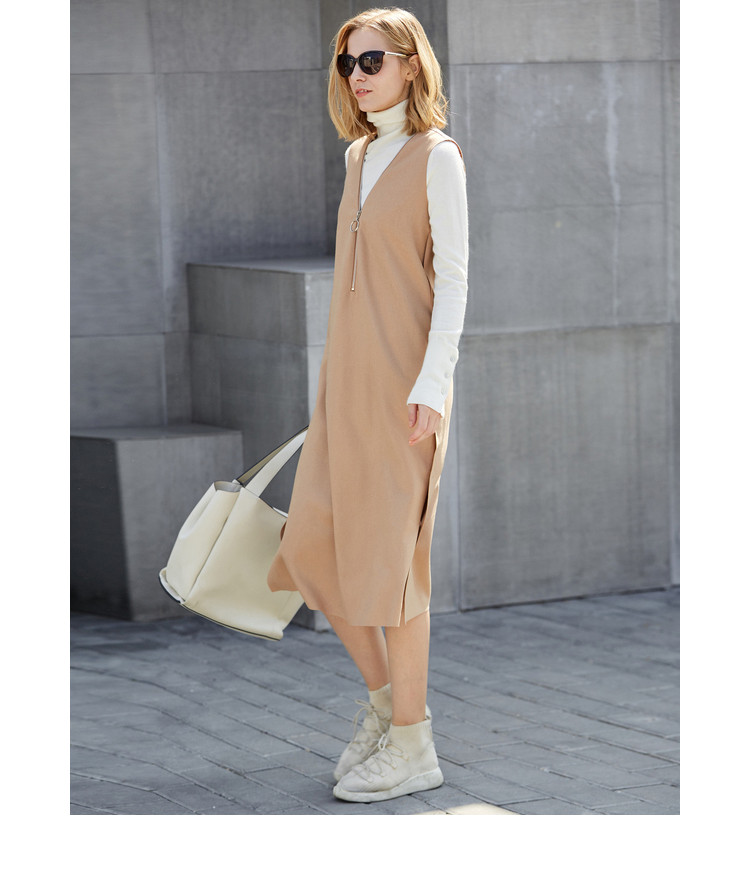 与高领衫打底来好搭显瘦的无袖连衣裙,