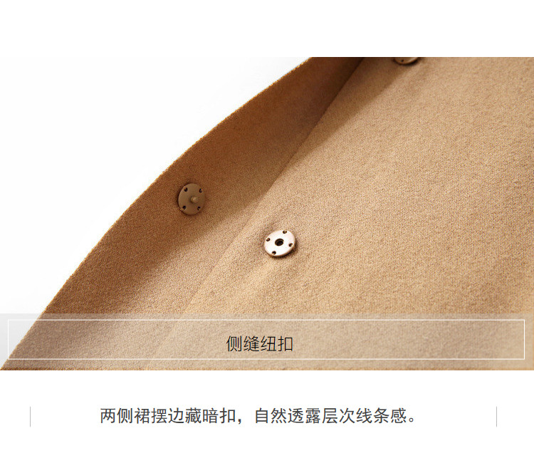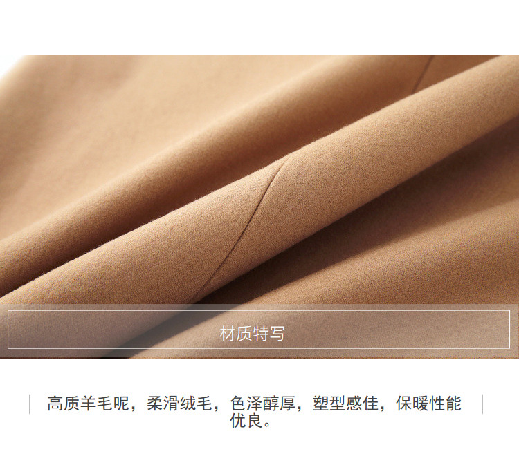 面料成分: 黑色:51.1%聚酯纤维、48.9%羊毛 (含微量其他纤维) 驼色:52%聚酯纤维、48%羊毛