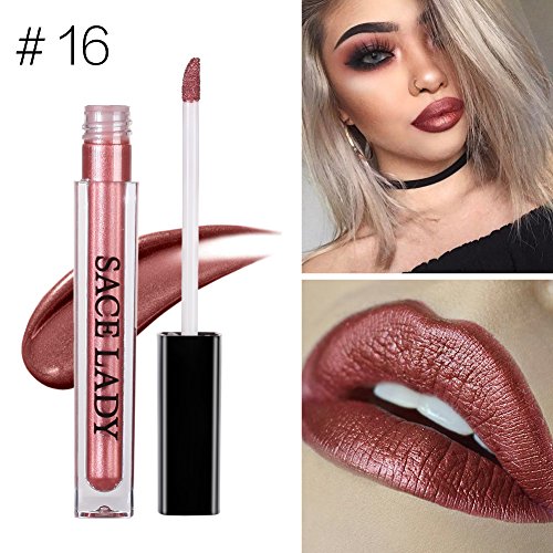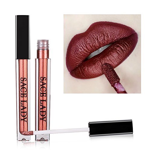 SACE LADY Waterproof Metallic Lip Gloss Ultra Lasting Pigment Glitter Liquid Lipstick, Non-feathering ,Non-bleeding, Marsala Metallic