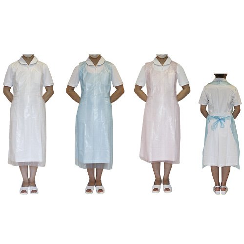 ● Color: Blue ● Number of entries: 50 ● Size (W x Length): 71 x 119 cm ● Material: Polyethylene ● It is a sleeveless type disposable apron.