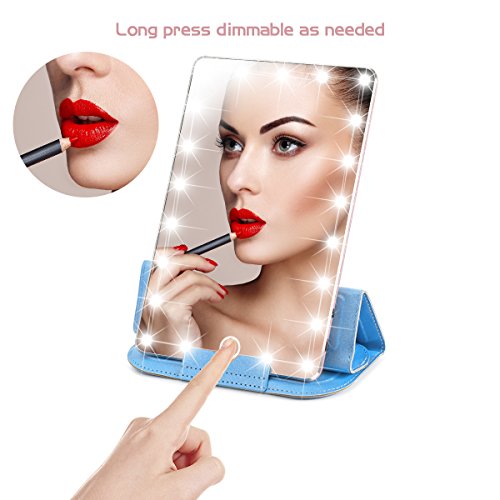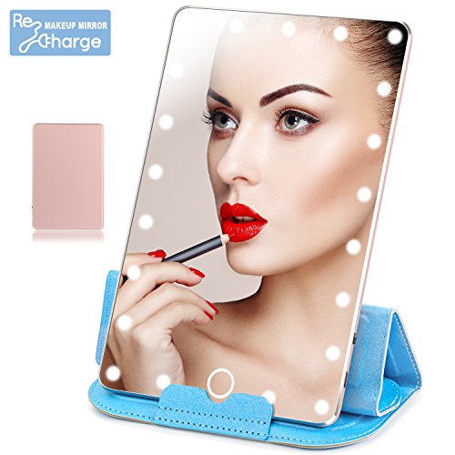 Lighted Makeup Mirror, LoiZau Rechargeable 21 LEDs Dimmable 7.9 Inch Portable Vanity Makeup Mirror with Lights for Travel USB Charging(Rose Gold)