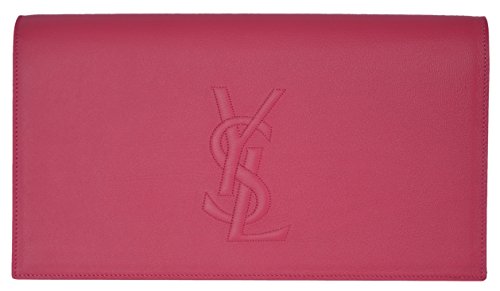 -. Feature : Beautiful Fuschia Pink Leather with Embossed YSL Logo / Magnetic Snap Close / Interior Pocket / Measures 11 x 6 x 2 inches / Original Saint Laurent Tags, and Dust Bag Included