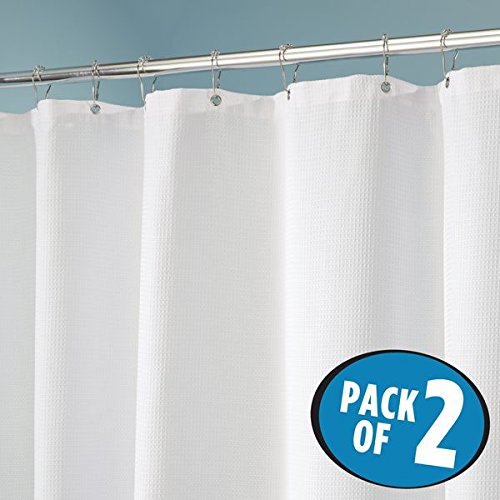 mDesign Cotton Blend Fabric Shower Curtain - Pack of 2, 72 x 72, White …
