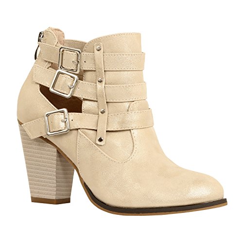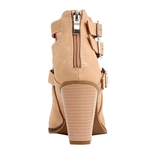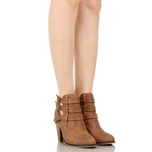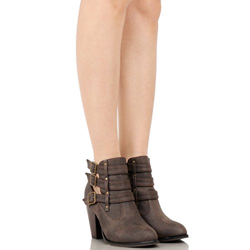 | Guilty Heart Womens Strappy Chunky Block Heel Buckle Ankle Bootie Boots Ankle Bootie |