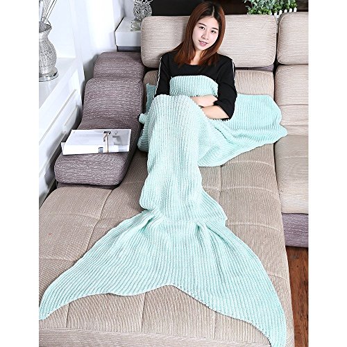 Coroler Lovely Handmade Light Blue Large Size Soft Warm All Seasons Mermaid Tail Blanket Sofa Living Room blanket