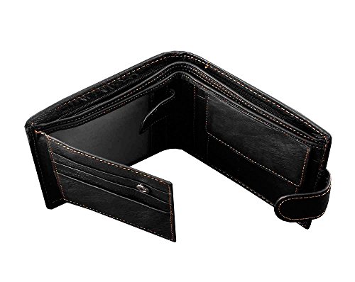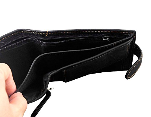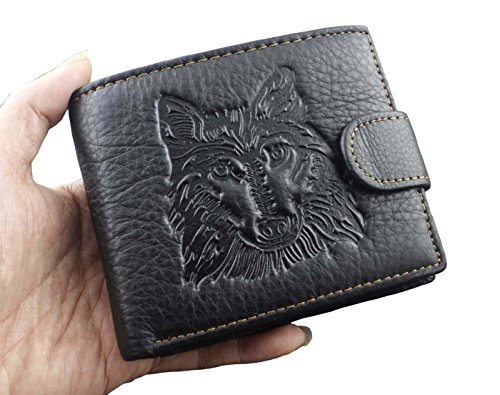Product DescriptionMens Western Genuine Leather Wolf Head Snap Card Money Coins Wallet Black L620
