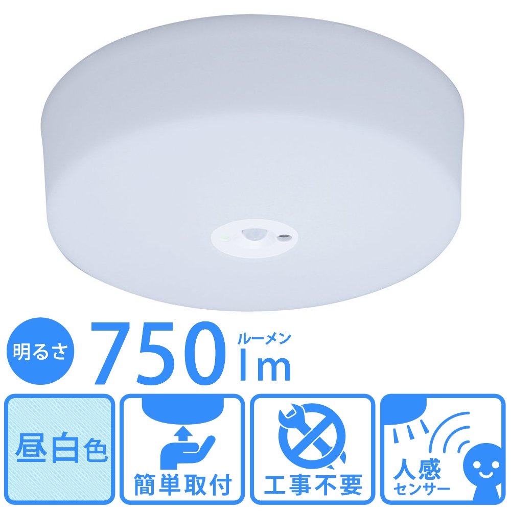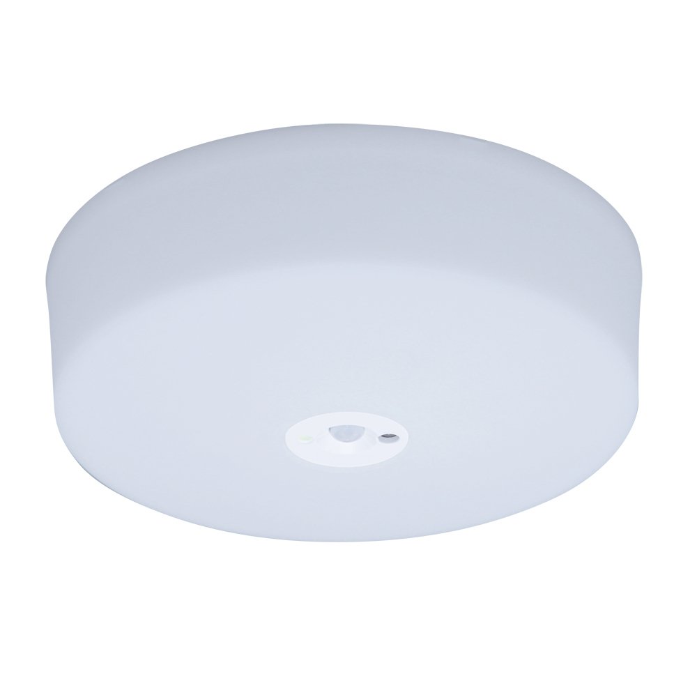 Sensor attached LED compact ceiling light that senses people and turns them on and off automatically.