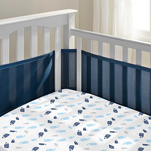 -. Feature : Breathable Baby Mesh Crib Liner reduces the risks of suffocation, entanglement and climbing / Breathable baby bumpers are soft and padded, keeps little limbs safely inside / Easy wrap design; adjustable to fit cribs with slatted ends, attaches easily with hook and loop fasteners, no dangerous ties / Collapses to prevent climbing, patented and safety evaluated / 100% Polyester solid colors coordinate with any bedding set, award winning product