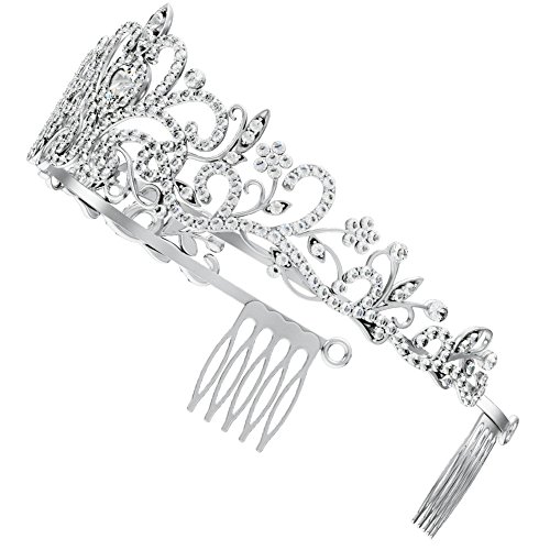Our hand crafted tiara is made from highly durable alloy. We have produced the perfect size to fit an adult head as well as for some younger girls. We've attached two fastening methods to this Tiara with comb clips and holes at the end of the Tiara for securing with a ribbon. Each rhinestone was meticulously placed onto the Tiara creating a stunning final piece. You will feel like a princess with our special silver rhinestone tiara.Feature
